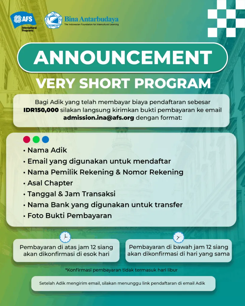 Being an AFS student is an experience of its own. Exploring new challenge and experience will be a new achievement in your life. AFS volunteers are also ready to support you, according to a standard and procedure designed by AFS to ensure your positive experience during program.